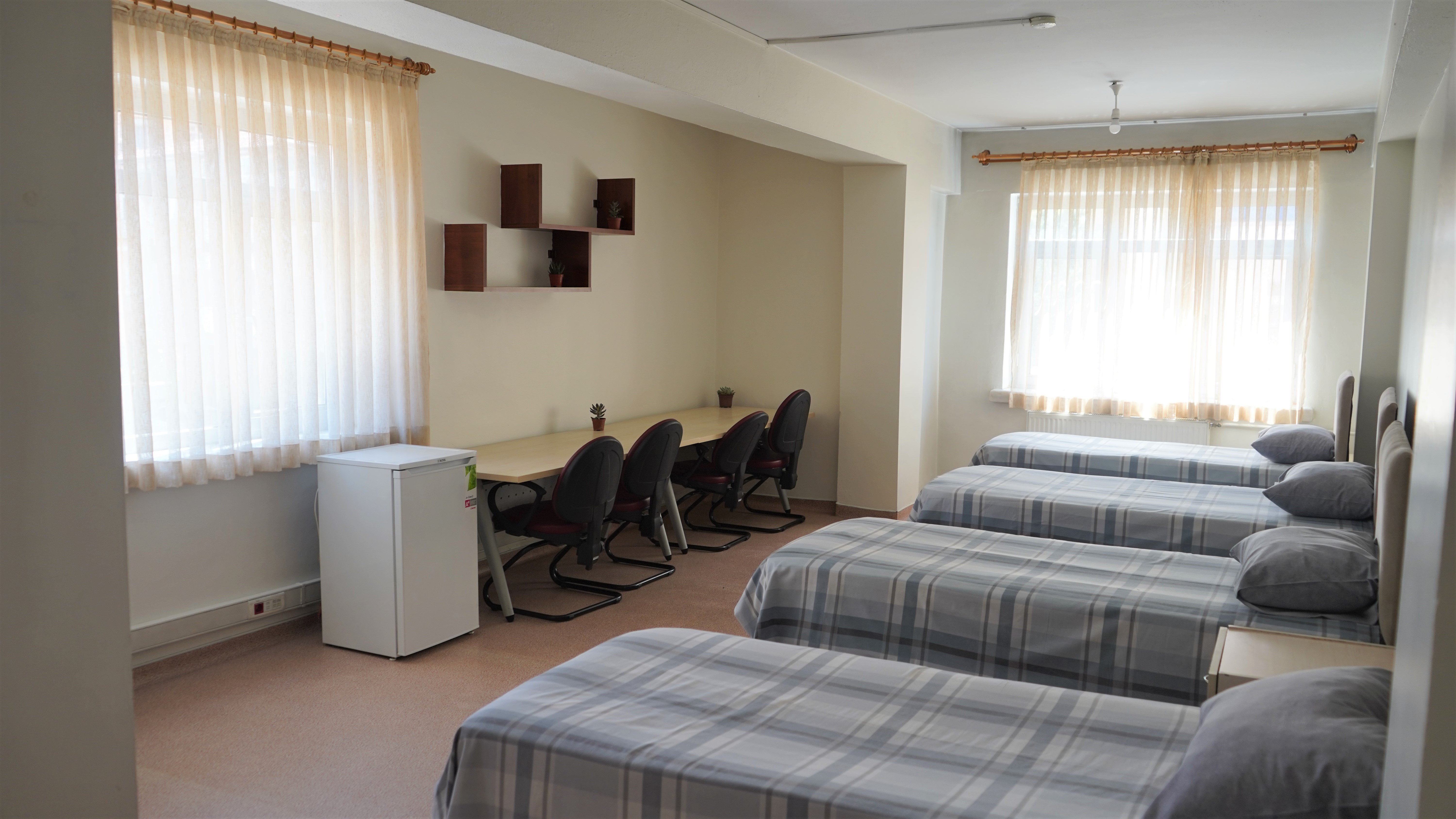 Yurt odalarımızda öğrencilerimize evlerinin rahatını aratmayacak ortopedik ve bazalı yatak, kişiye özel gardrop, çalışma masası, mini buzdolabı mevcuttur. Odalarımız 1, 2, 3, 4, 5 ve 6 kişilik olarak düzenlenmiş olup, geniş ve aydınlıktır. Odalarımızın ve banyoların temizliği kat görevlilerimiz tarafından günlük olarak itinayla yapılmaktadır. Nevresimlerimiz düzenli olarak değiştirilmektedir.